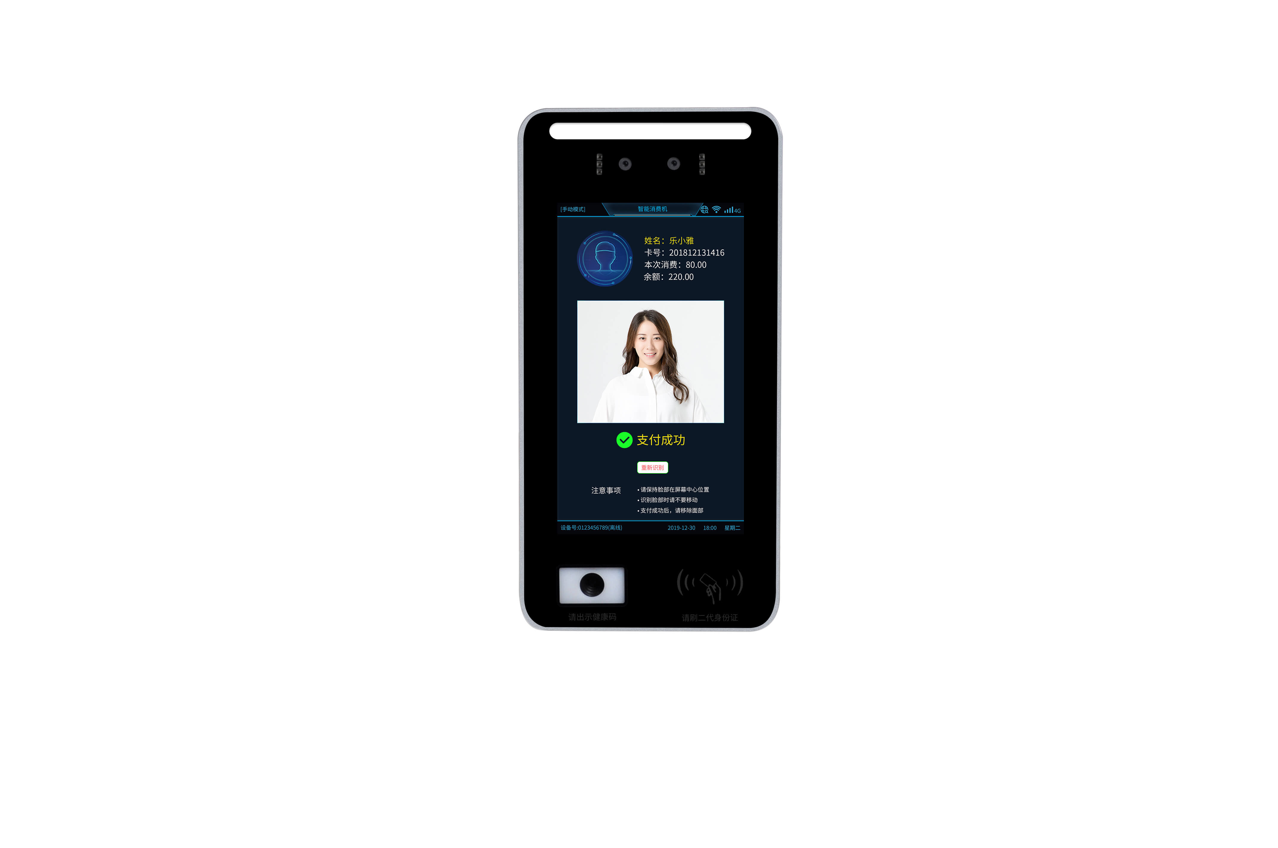 刷臉消費(fèi)機(jī)是基于生物特征識別技術(shù)的一種智能終端,通過攝像頭捕捉用戶面部圖像,并利用人工智能算法對其進(jìn)行識別。用戶只需通過簡單的面部掃描,就可以完成支付、查詢個(gè)人信息等操作。這項(xiàng)技術(shù)的核心在于面部識別,它通過分析用戶的面部特征,構(gòu)建人臉特征模型,并與數(shù)據(jù)庫中的用戶信息進(jìn)行比對。