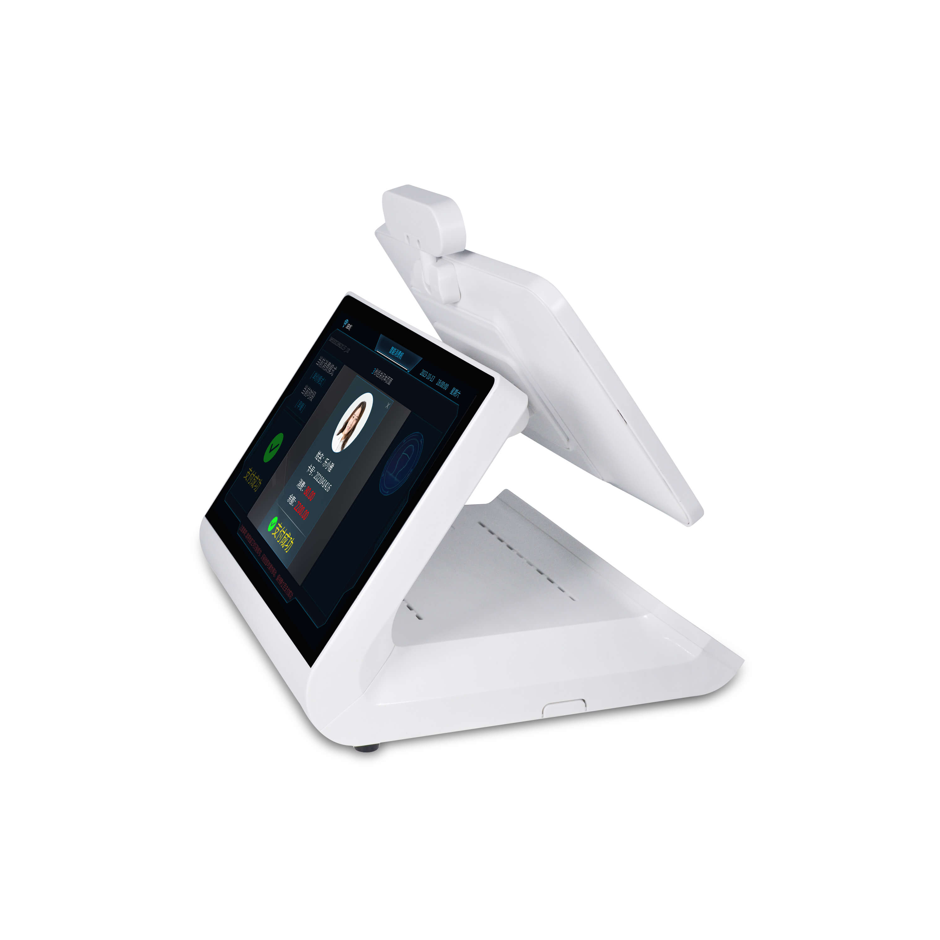 雙攝像頭配置(200萬(wàn)像素人臉識(shí)別+500萬(wàn)像素掃碼鏡頭)