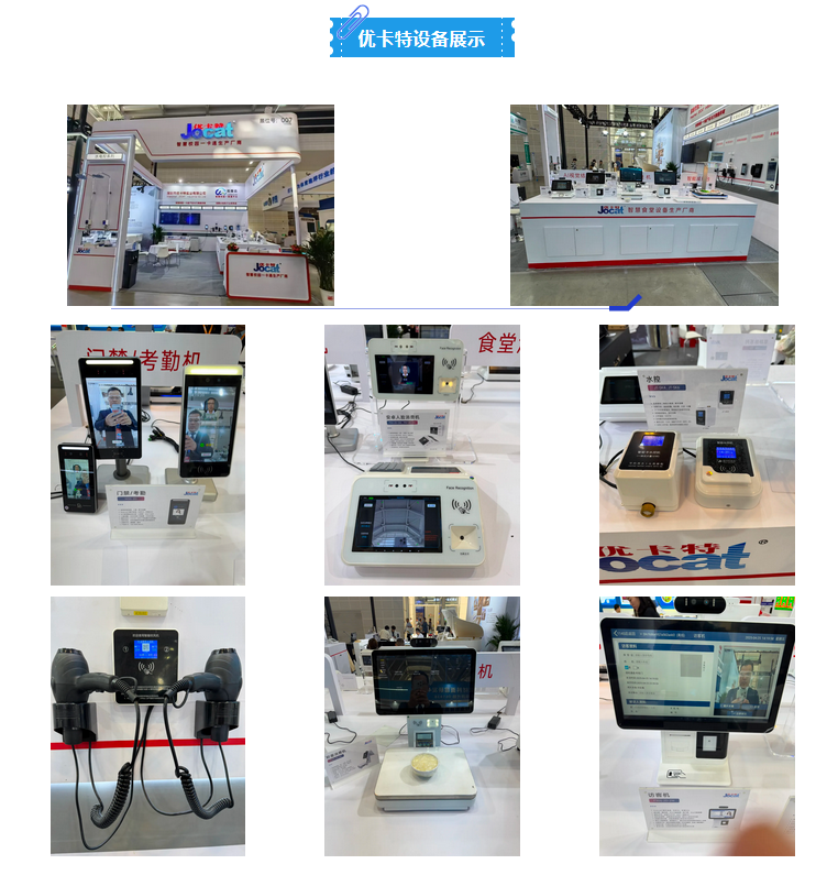展會(huì)期間,深圳優(yōu)卡特全面展示了核心產(chǎn)品矩陣,覆蓋多元智慧場景需求。從保障出入口安全的訪客機(jī)、門禁 / 考勤機(jī),到優(yōu)化園區(qū)消費(fèi)體驗(yàn)的食堂消費(fèi)機(jī)、安卓人臉消費(fèi)機(jī),再到 AI 賦能的POS 款安卓人臉消費(fèi)機(jī)(AI 視覺結(jié)算) ,每款產(chǎn)品都展現(xiàn)了前沿的技術(shù)實(shí)力。同時(shí),現(xiàn)場還呈現(xiàn)了水控機(jī)、水電控系列、掌靜脈系列等高效管理設(shè)備,以及智能共享吹風(fēng)機(jī)、智能電控機(jī)等創(chuàng)新產(chǎn)品,全方位覆蓋智慧園區(qū)、校園、企業(yè)等多領(lǐng)域的一卡通應(yīng)用需求。